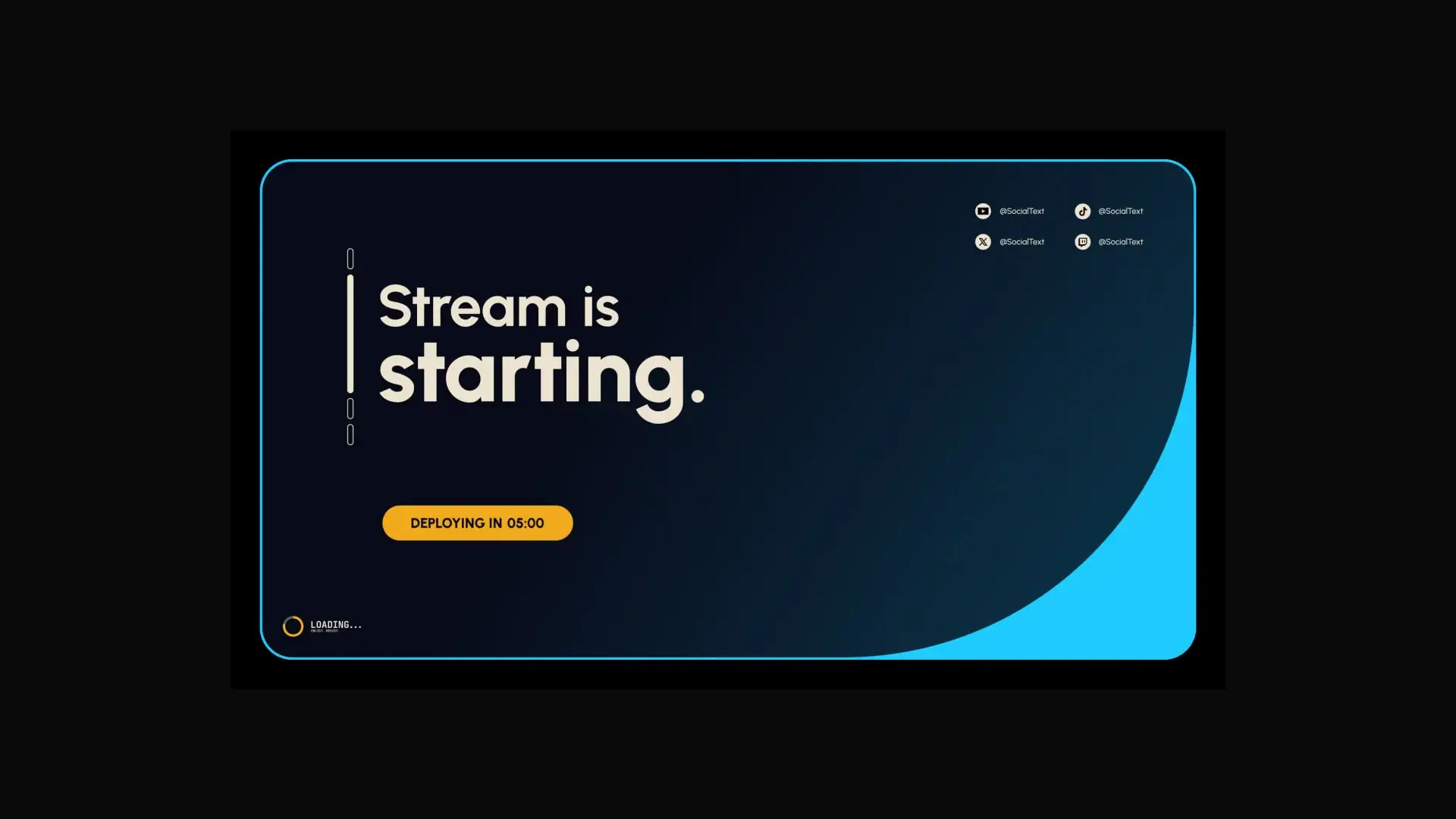 Exodus includes a complete set of animated overlays built around a dark, neon-accented visual language. A glowing border frames each scene while a sweeping gradient element anchors the lower right corner, giving every layout a cinematic feel without stealing focus from your gameplay or camera.