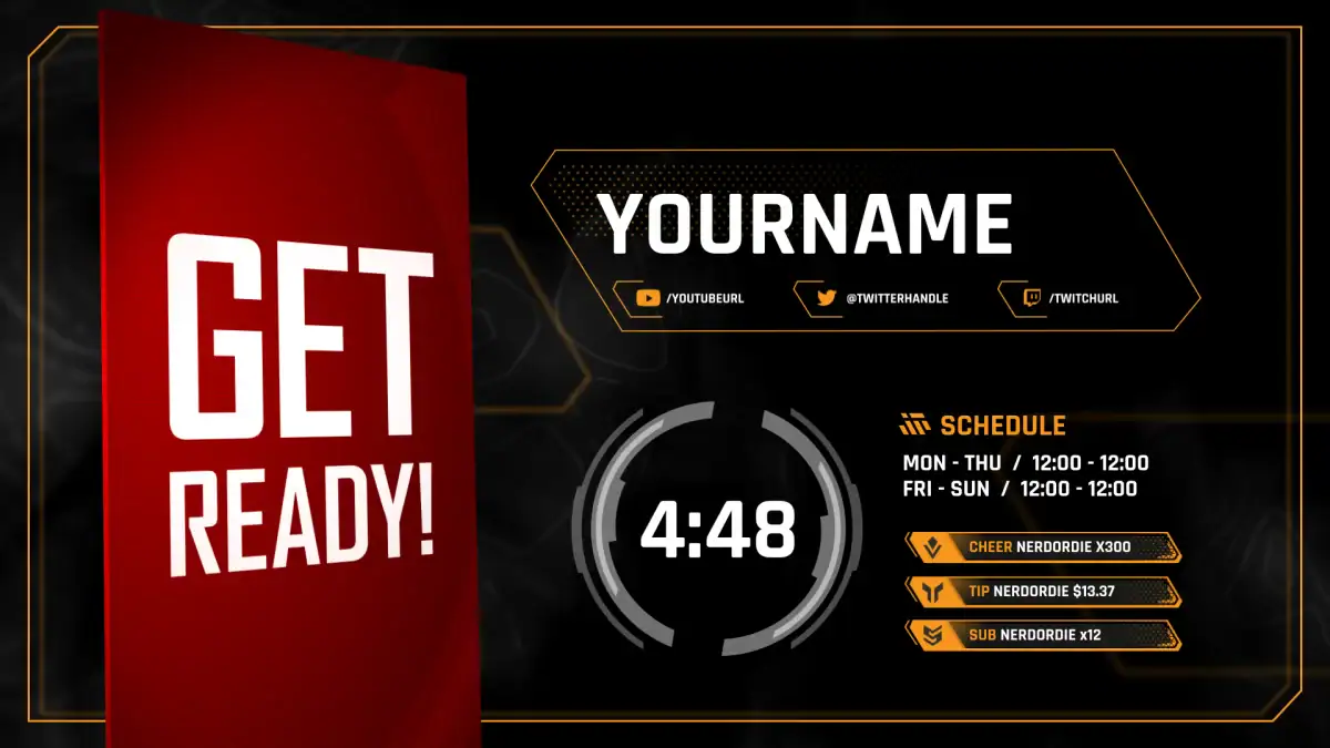 Become the Apex Predator! Hunt your enemies on stream with these clean overlays inspired by the worlds of Apex Legends and Destiny. This pack is quick and easy to install with Streamlabs and StreamElements, and works with all major streaming software like OBS Studio and Streamlabs Desktop. Stylistically reminiscent of the worlds seen in Apex Legends and Destiny, the included widgets can add to any streamer’s live experience.
